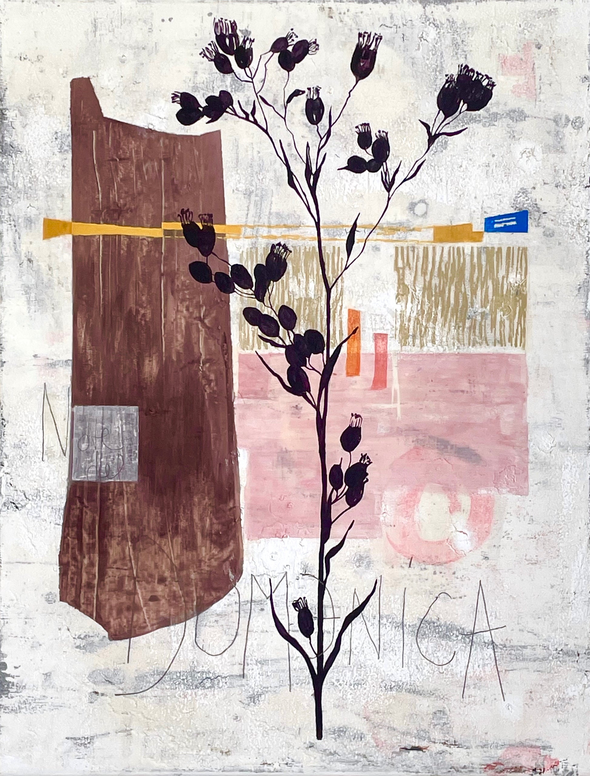 Jet-te L. Ranning (b. 1954, lives and works in Odense, Denmark). Ranning’s painting moves in the borderland between the figurative and the abstract. Her works are built up in multiple layers using oil, acrylic, and marble dust, creating a light, almost veil-like transparency. Through cracks in the surface, layers of color emerge, forming a play between structure and motif. It is a kind of painting that both captivates the eye and invites interpretation.