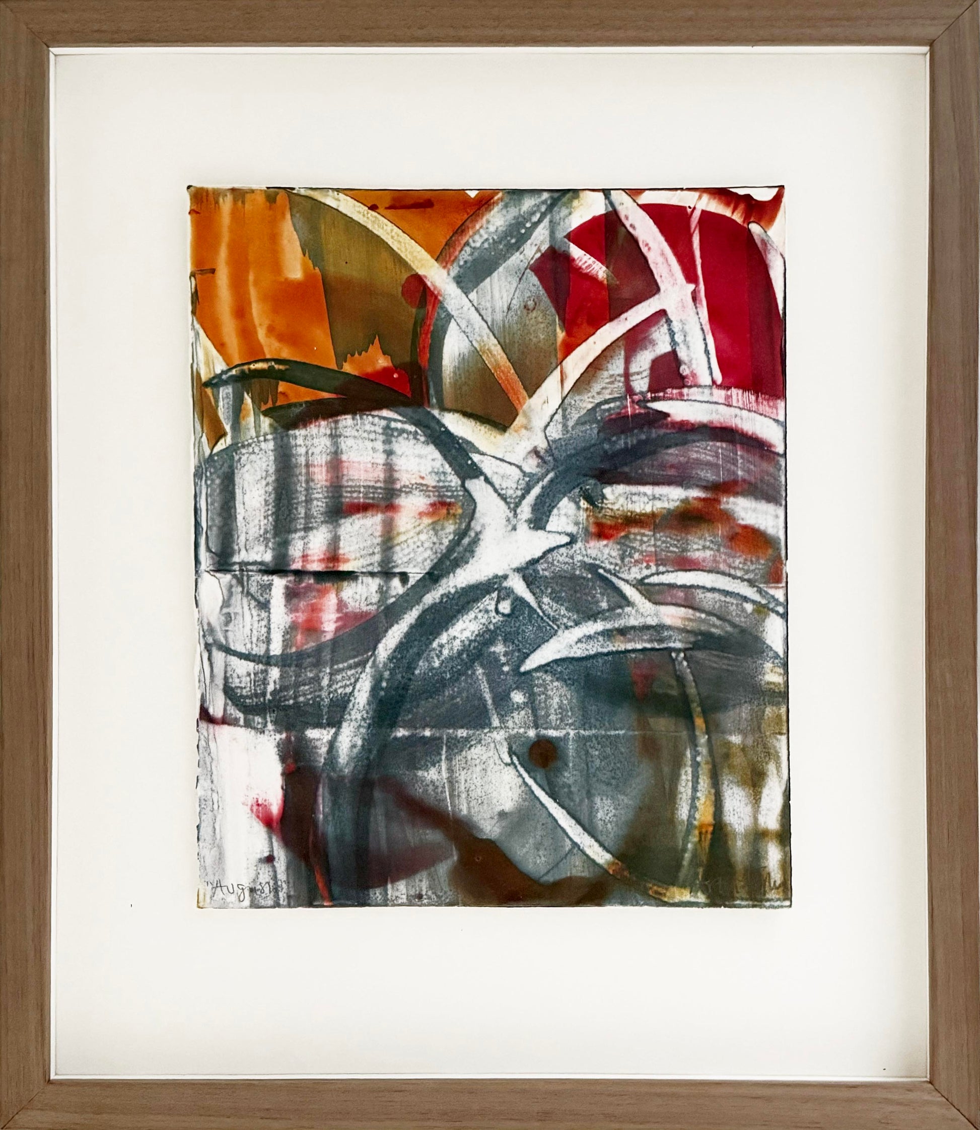 Ram: Lådram i valnöt med art glass