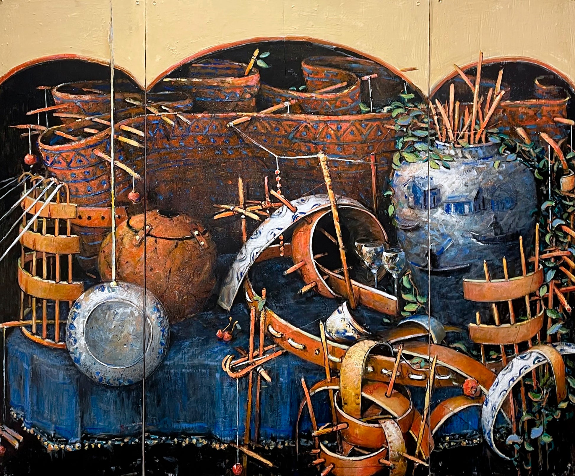 Övrigt: Verket ingår i utställningen "Viskningar av tid och rum". Vid eventuellt köp kan verket hämtas / skickas först efter utställnings slut.