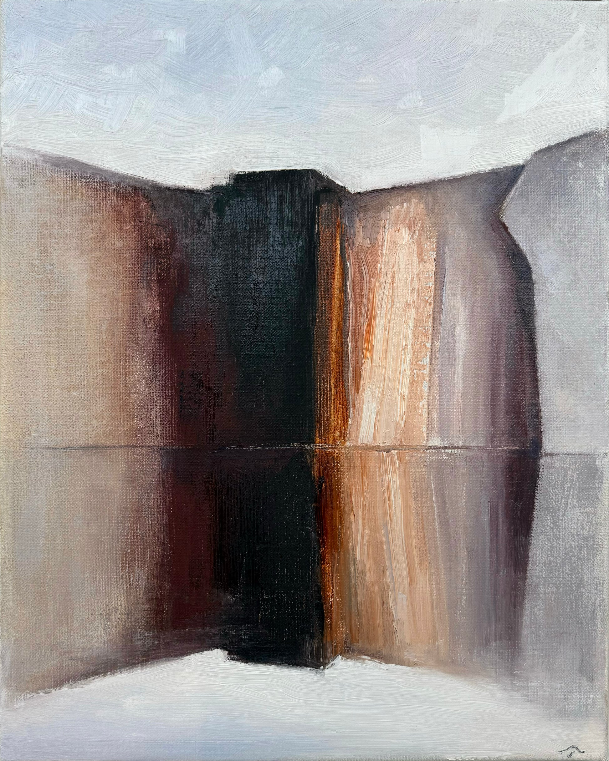 Teknik: Olja på duk, inramad av konstnären i vit ram (ej glas)