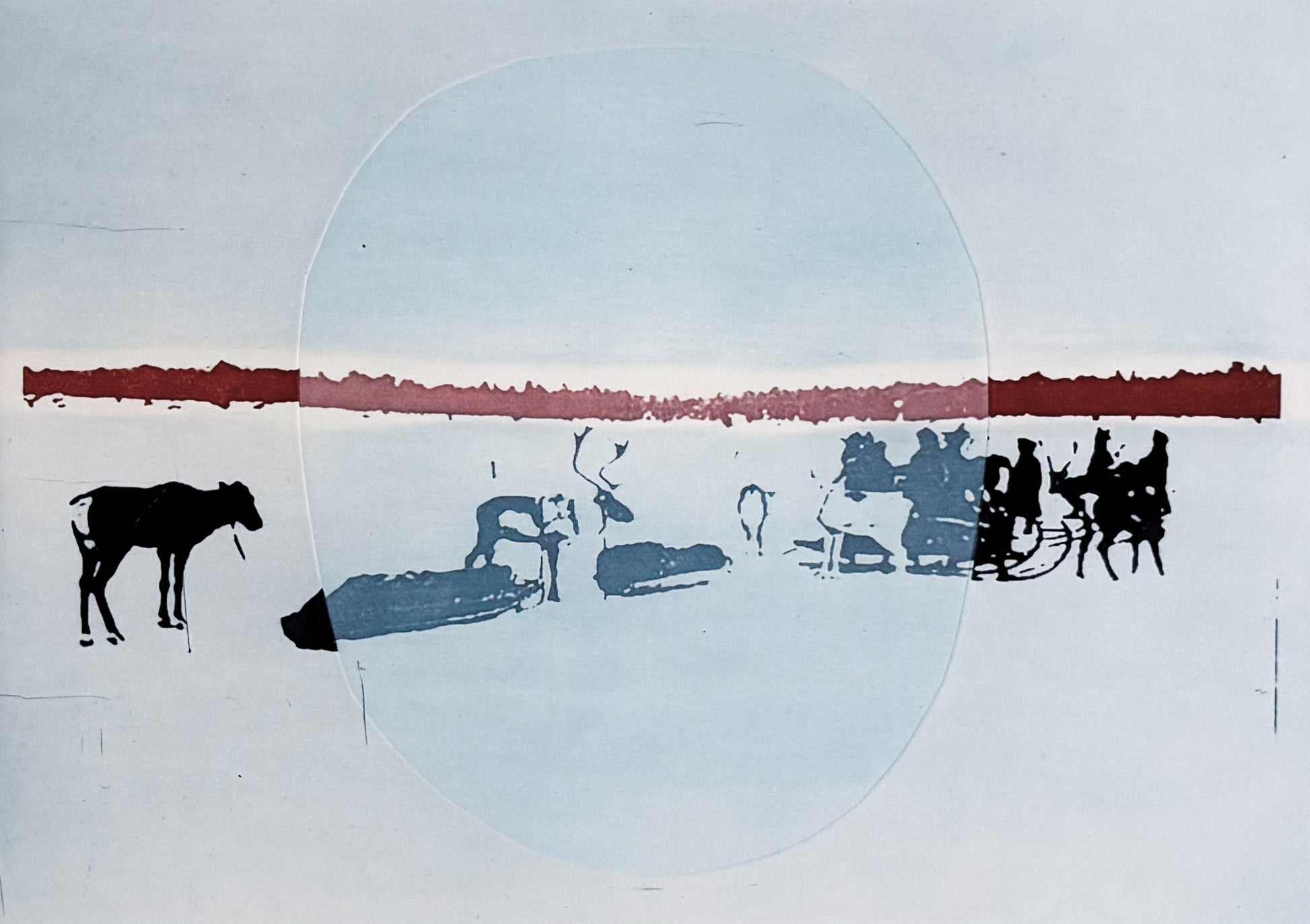 Genom en samisk trumma betraktar vi en vilande vår-flytt längs en norrländsk isbelagd älv. Gruppen är på färd från kusten upp mot sommarlandet i fjällen.